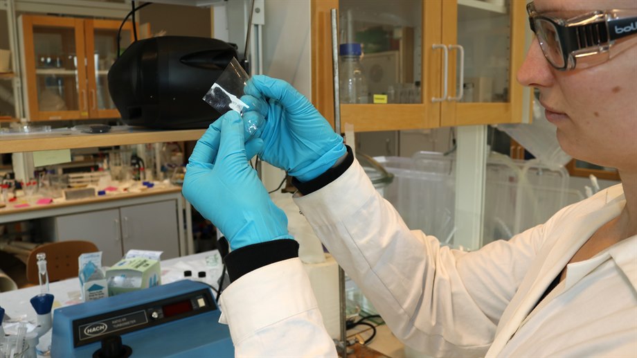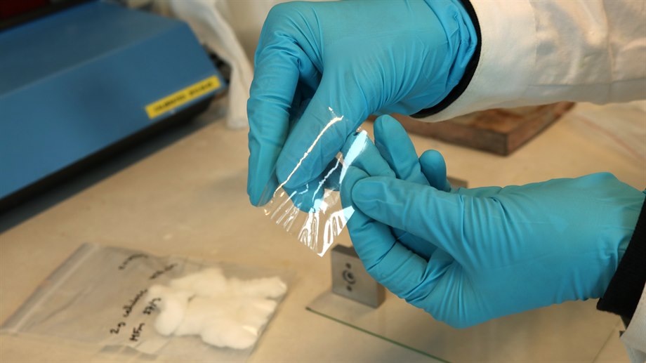 "Vi får cellulosa från Domsjö Fabriker och arbetar på labbet med att studera och utveckla olika tekniker för att skapa cellulosafilmer", säger Malin.
