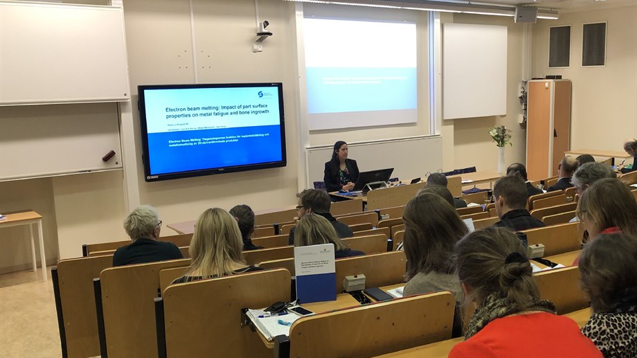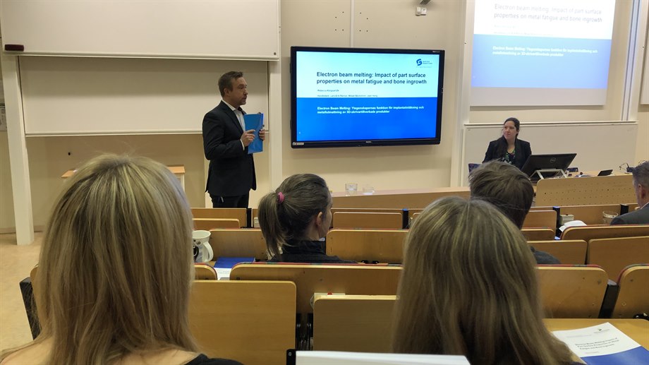 Rebecca Klingvall Ek försvarade i veckan sin doktorsavhandling "Electron beam melting: Impact of part surface properties on metal fatigue and bone ingrowth" och fick godkänt. Stort grattis Rebecca!