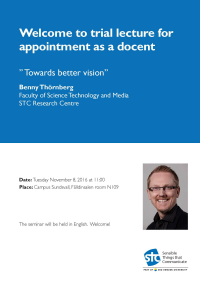 Benny Thörnberg will hold a trial lecture under the title "Towards better vision".